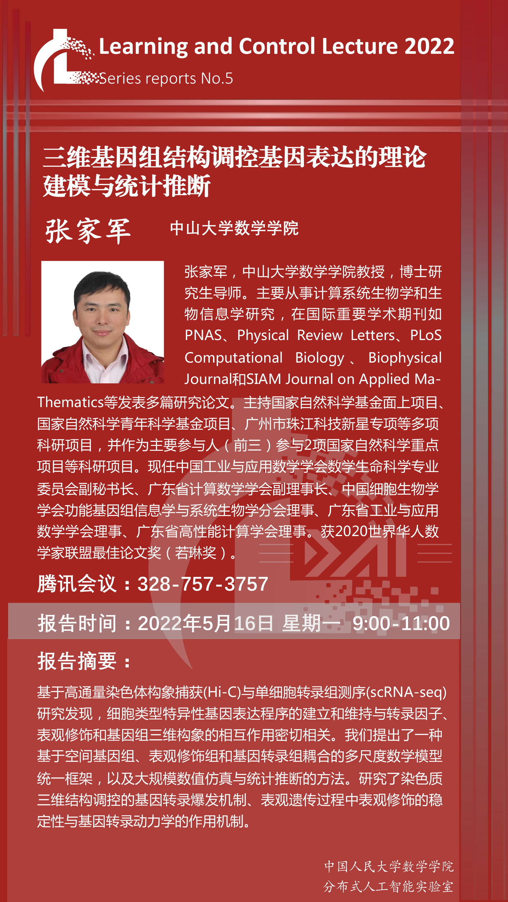 报告地点:腾讯会议 ID: 328 757 3757