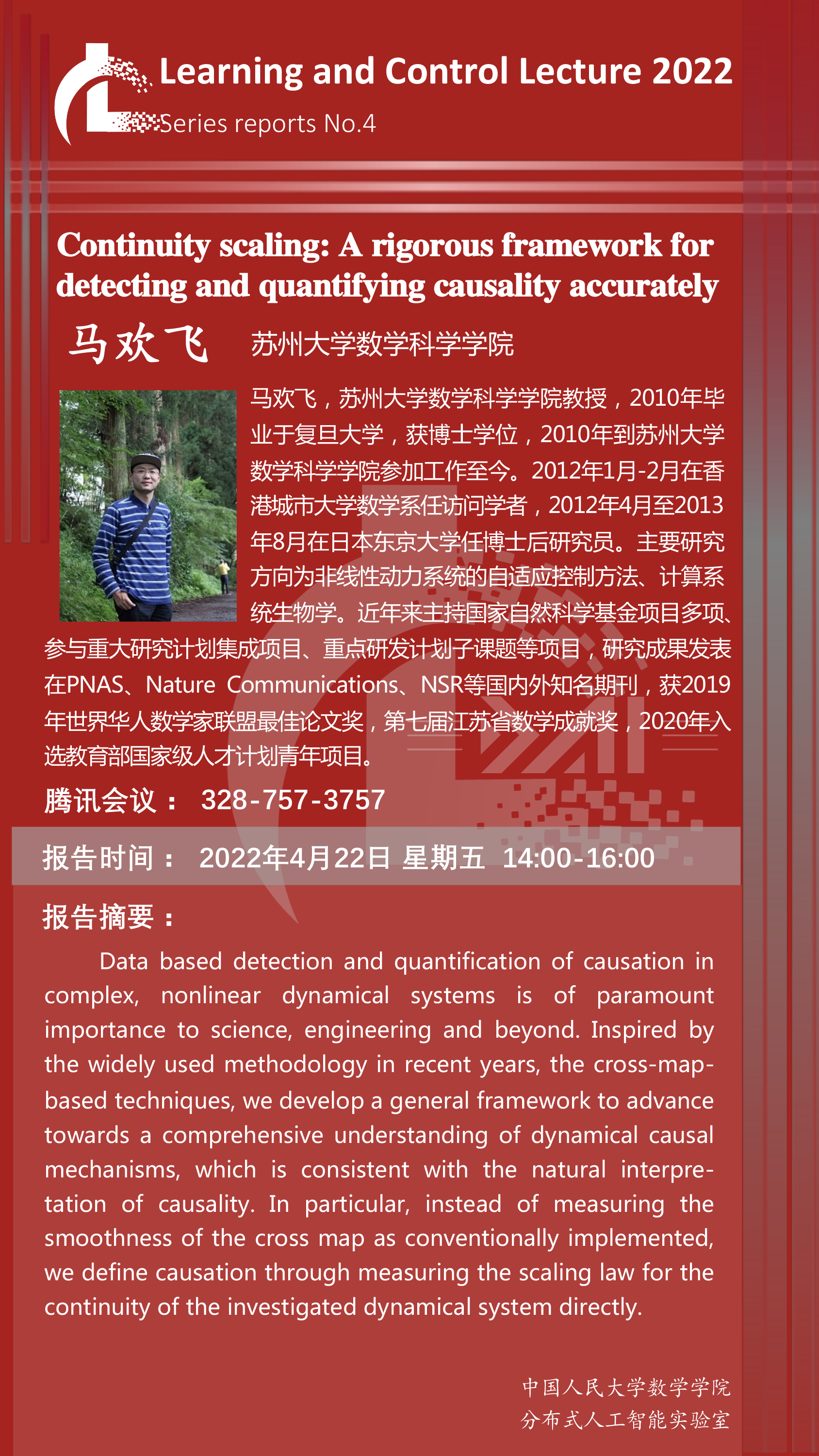 报告地点:腾讯会议 ID: 328 757 3757