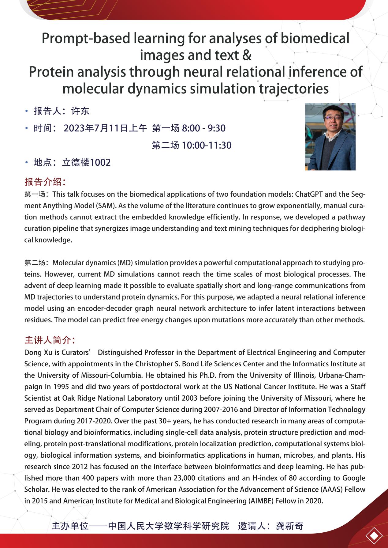 学术报告|许东教授:生物信息学报告