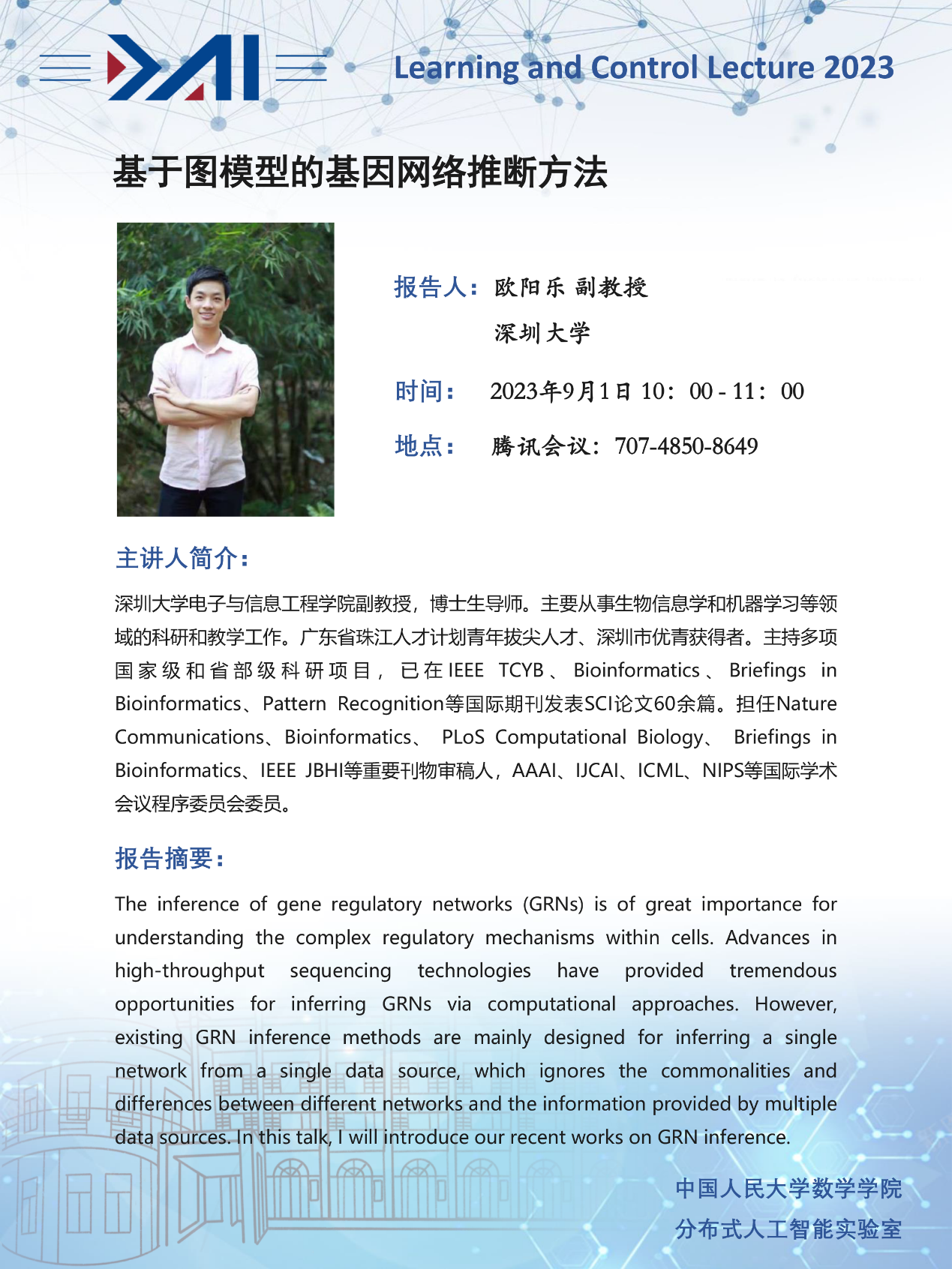 报告地点:腾讯会议 ID:707-4850-8649