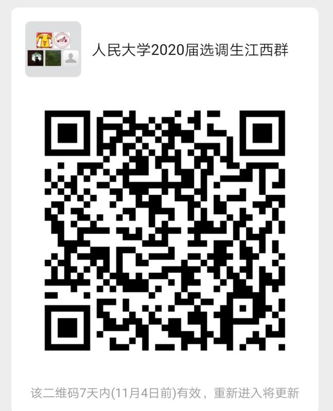 感兴趣的考生可扫码加入“人民大学2020届选调生江西群”,如微信群满100人,可加微信:jicengjiuye,备注“姓名+公司+江西2020届选调”