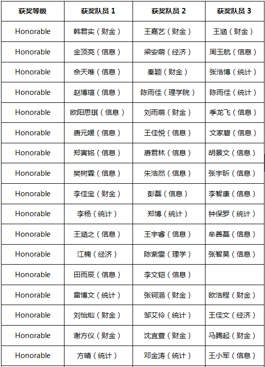 附:2017年美国老员工数学建模竞赛人民大学获奖名单
