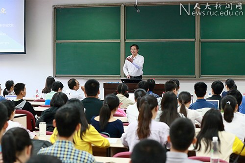 随后,袁亚湘以“大数据与优化”为题为人大师生作报告。袁亚湘在报告中讲解了大数据问题的优化建模及其主要的计算方法,运用通俗易懂的语言介绍了压缩感知、矩阵完整化、距离几何问题、分类问题、梯度法、随机梯度法、交替方向法等当前国际上备受关注的优化问题和主要优化算法。