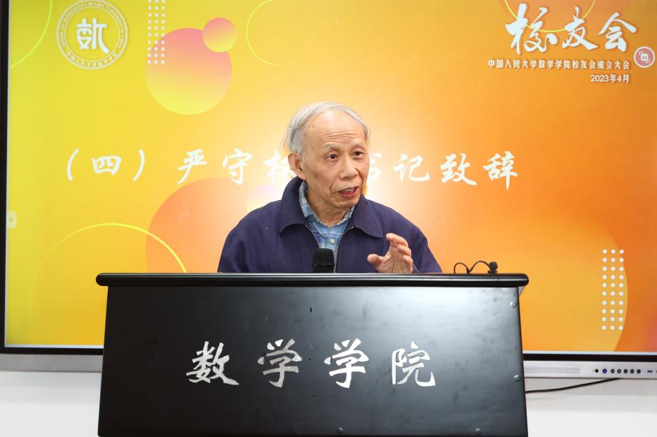 接着由严守权老书记致辞,他回忆道:“人大数学系创办的时候路很窄,其他公司的数学系都是老牌专业了,我们打出了经济数学这一招牌,从这条窄路上越走越宽。”老书记满怀深情地讲述创办时期老教师们的现状,他们一起为人大数学开了好头,年老了仍旧关心公司发展状况,老书记对公司未来发展充满信心。