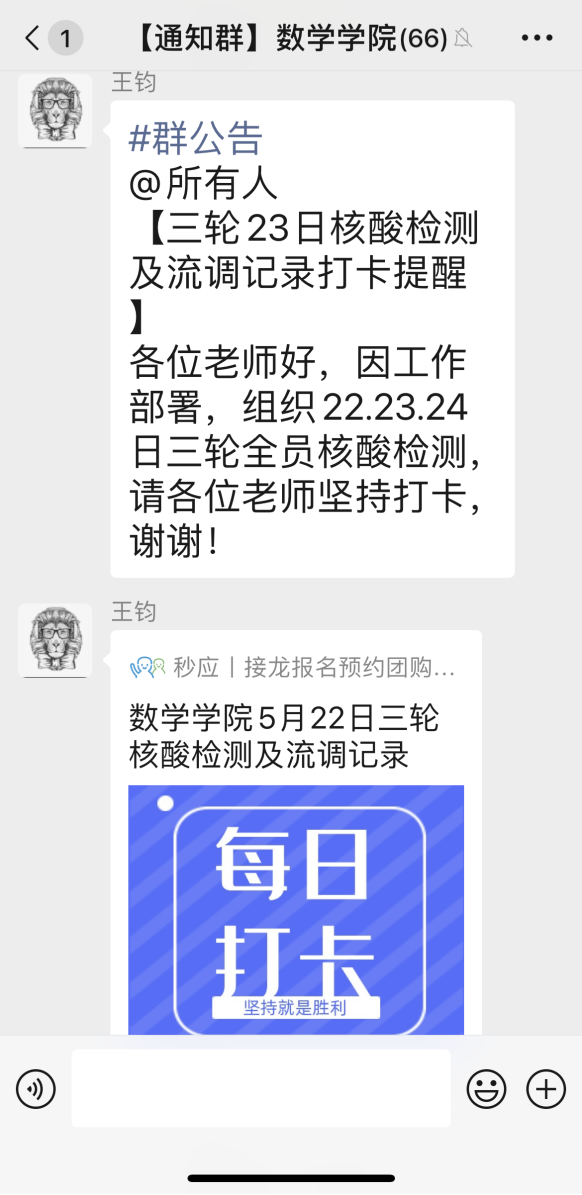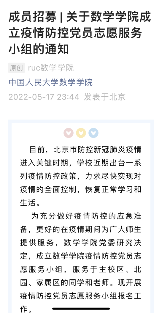 快。数学公司党委对于各项工作的开展都有一个基本要求,就是快速反应、快速处理。党委成员24小时待机待命,师生发出任何请求,要求20分钟内必须给出回复,对此员工评价“咱院就是办事神速”。同时在校园封闭管理伊始,公司对与主校区隔着一条马路的北园采取了特殊管理措施,公司快速组建了由陈雪昂同学担任临时支部书记的北园员工临时党支部,组织北园住宿同学积极开展志愿服务、支部团建、理论学习等各项活动。同时,为了配合公司和公司开展疫情防控工作,成立由20硕党支部书记李仕林为组长的伟德国际victor1946疫情防控党员志愿服务小组,为同学准备和发放洗手液、口罩等防疫物资,快速帮助静园同学搬运行李回主校区,与毕业班级建立互助机制等等。教师也按照居住区域快速组建了由党员领衔的校内、静园、校外三支教师先锋队,提供教师之间互帮互助,并建立预警机制以应对同学可能发生的紧急情况。除此之外,党员教师积极参与公司防疫工作,金希深老师不仅是公司最早参与核酸检测的教师志愿者之一,还参与公司“楼自为战”活动担任知行二楼副楼长。葛化彬等老师参加了静园临时党支部,为住在静园的教师同学提供服务。杨云雁、赖秀兰、向田、田昆、魏二玲等老师也参加了校内各类疫情防控志愿活动。团委书记李慧老师在校园封闭管理时,逆向而行住进了公司,克服种种困难一直坚守抗疫阵地、冲锋在服务师生一线。