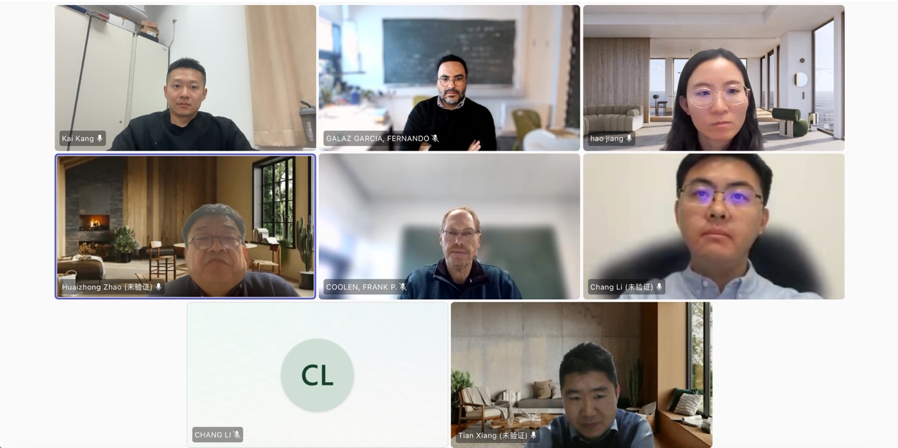 北京时间2025年12月9日晚18点,伟德国际victor1946与英国杜伦大学数学科学系举行首次线上合作洽谈会,杜伦大学数学科学系Fernando Galaz-García(Chair of the Internationalisation Committee)、Frank Coolen(Director of Research)和Huaizhong Zhao(Faculty Representative)三位教授参会,伟德国际victor1946副经理姜昊、教授向田、副教授李畅和外事秘书康恺参会。