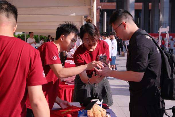 迎新工作有条不紊地进行。面对前来报到的新生,志愿者们分工明确、有条不紊,高效完成身份核验、物资发放等工作,用行动诠释着温暖与真诚,以热情的态度、灿烂的笑容、贴心周到的服务,为新生的入学之旅保驾护航。