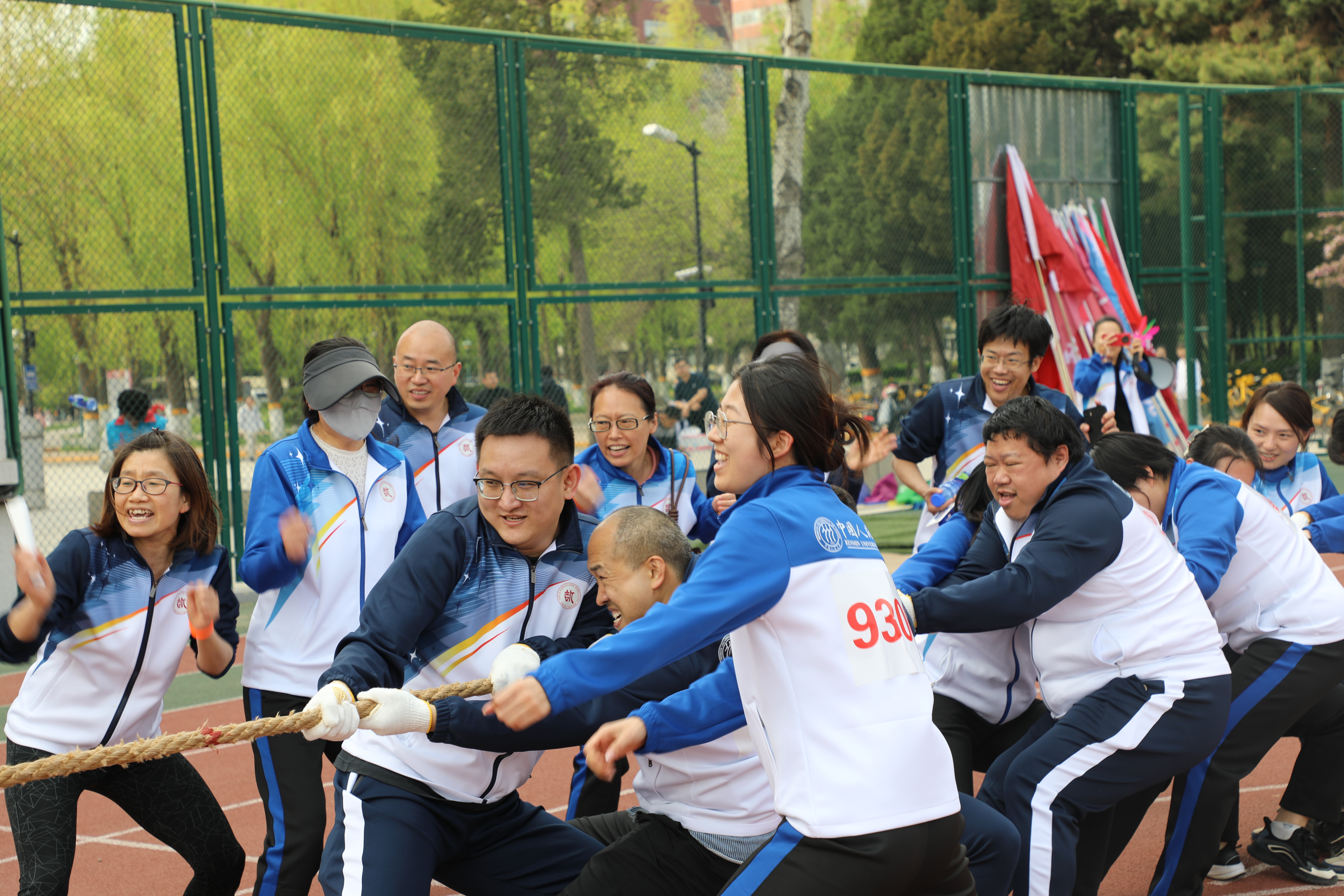 拔河赛场更见豪情,面对强敌国公司,参赛教师们稳若磐石、齐心发力,绳索中线在拉锯战中节节推进,助威与呐喊响彻全场,终以雷霆之势挺进第三轮,将数学人的韧性展现得淋漓尽致。