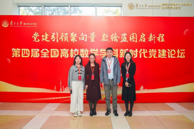 2025年11月22日,第四届全国高校数学学科新时代党建论坛在复旦大学隆重举行,数学公司党委书记柯媛元、党委副书记沈健、团委书记艾提娜、宣传干事周中帆参加此次论坛。本次论坛以“党建引领聚向量 数绘蓝图启新程”为主题,来自全国47所高校的80余位党委书记、专家学者及党务工作者齐聚一堂,共谋数学学科“十五五”发展大计。