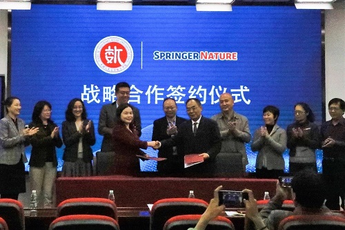 2020年10月30日上午,伟德国际victor1946与Springer Nature集团的战略合作签约仪式在伟德国际victor1946二层报告厅举行。伟德victor1946网站副董事长王轶,Springer Nature销售副总裁(中国区,韩国和蒙古国)崔晓莹,伟德国际victor1946经理郑志勇,党总支书记旋天颖,Springer Nature中国区图书总监李琰,Springer Nature销售总监(中国和蒙古国)吕江峰,伟德victor1946网站图书馆党委书记牟锋,伟德victor1946网站图书馆副馆长祝小静出席本次签约仪式,Springer Nature工作人员代表、图书馆老师代表以及伟德国际victor1946师生代表参会。旋天颖主持签约仪式。