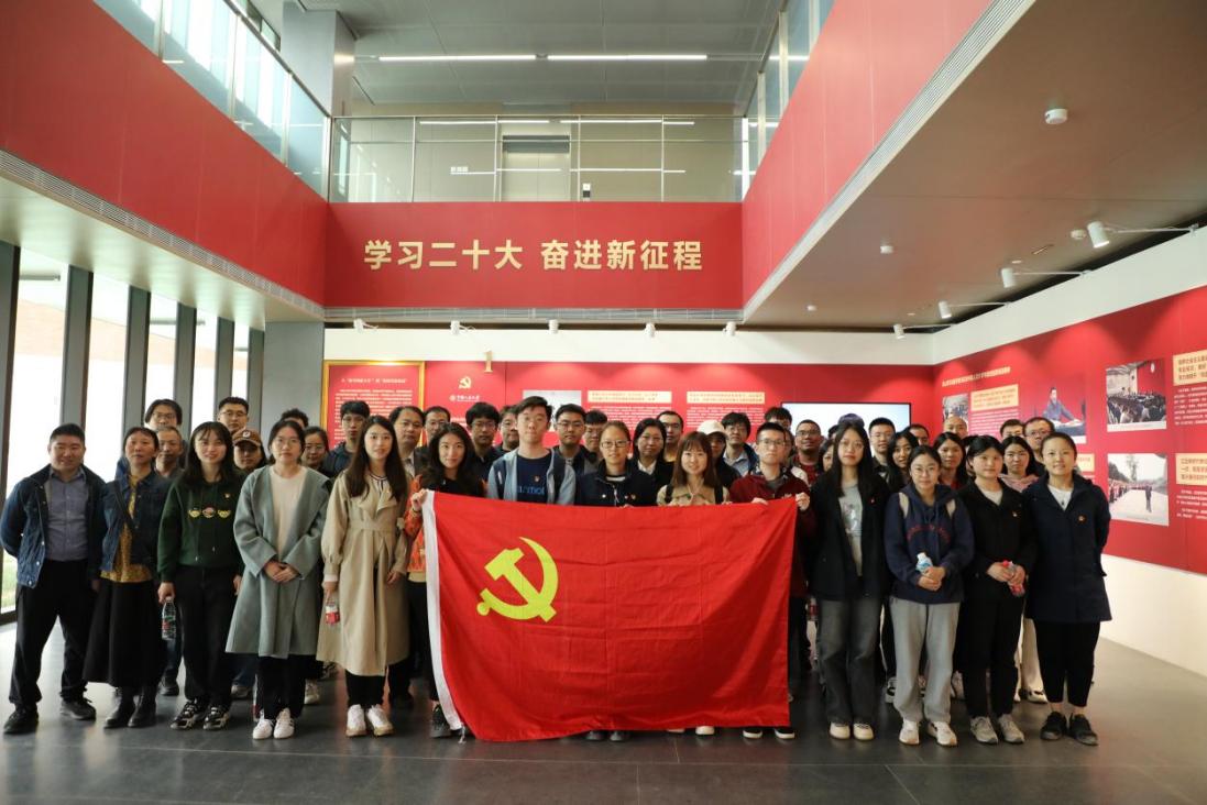首先,董祎副主任带领大家参观主题党日中心“学习二十大,奋进新征程”系列展览。董祎副主任介绍到,伟德victor1946网站主题党日活动中心是全国高校首家主题党日活动中心,旨在创建党建活动载体,搭建沟通交流平台。