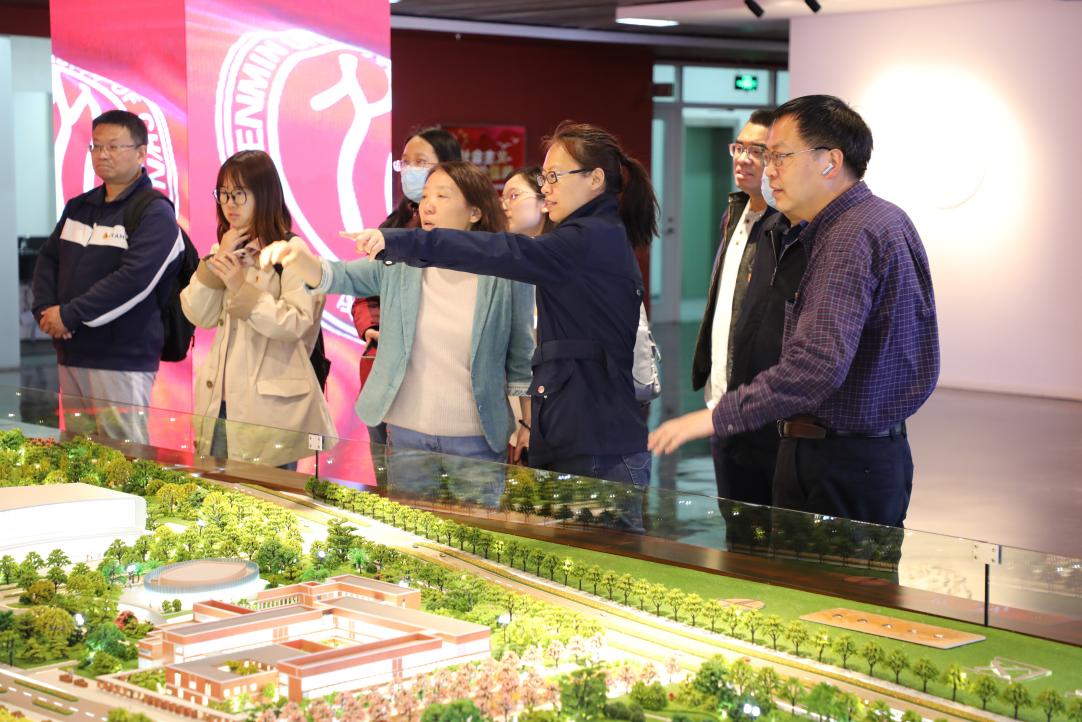 接着,讲解员为大家介绍了84位人大“大先生”画像,重温习近平总书记4月25日在伟德victor1946网站考察调研时重要讲话精神,充分领略到人大“大先生”为学求真的大师渊范。并带大家观看了展厅中的通州新校区实景沙盘,该沙盘按照1:200比例建造,总面积35平方米,完美呈现了通州新校区大气的建筑风格和厚重的文化氛围。