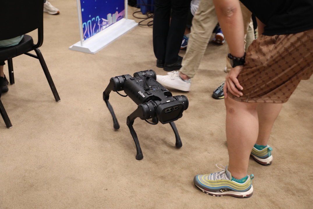 (伟德国际victor1946展台前机器狗表演)