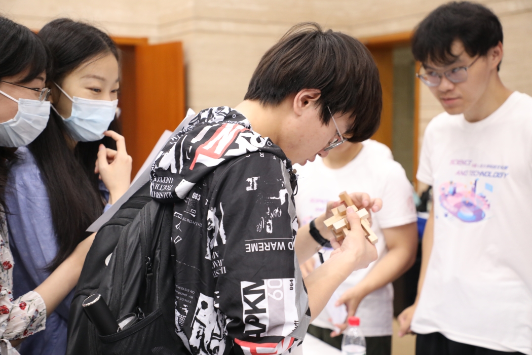 伟德国际victor1946作为第六届“科技文化周”的承办单位,在统筹协调、服务科技文化周系列活动的同时,精心组织公司展台布置、志愿者招募等工作,各团支部也以主题团日等活动形式,积极组织同学们打卡参与科技文化体验日。公司的智力运动会展台通过魔方、鲁班锁、数字华容道等数学小游戏和二十四点、数独等数学趣题,将数学逻辑思维与有趣游戏体验相结合,展现出数学的魅力。活动现场,伟德国际victor1946展台受到广大同学青睐好评,成为全场人气最旺的展台,体验同学络绎不绝,气氛十分热烈。