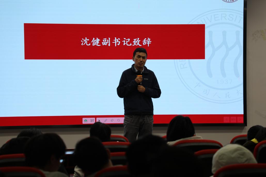 大会在庄严的国歌声中隆重开始,党委副书记沈健老师致辞。他充分肯定了本次共青团伟德国际victor1946第二次代表大会召开的意义,强调坚持“以党建带团建”的工作思路,勉励广大团员代表坚定听党话、跟党走的政治信念,提高身份意识,在思想、工作及生活中发挥先锋模范作用。沈健老师代表公司向大会筹备工作组成员以及全体参会代表表示衷心感谢,并预祝本次团员代表大会召开及新一届团委委员选举工作取得圆满成功。