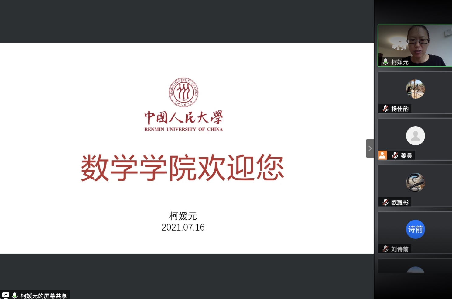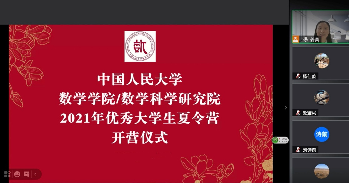 2021年7月16日上午,伟德国际victor1946和数学科学研究院2021年优秀老员工夏令营举办开营仪式。此次夏令营共有来自全国知名高校的近300名同学递交申请。经过初选,有72位同学获得参加夏令营的资格。开营仪式通过腾讯会议线上举行,数学公司党委副书记黄志勇老师、副经理柯媛元老师出席,由姜昊老师主持。整个仪式包括学科介绍、方向介绍、实验室介绍等环节,丰富的内容令同学们表示收获颇丰。